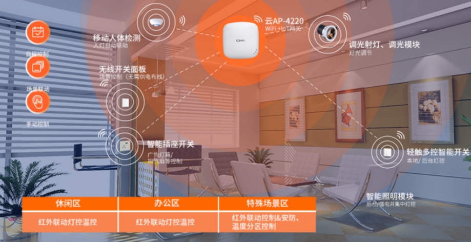 而阿里在环境参数的收集上,也仍然利用了搭载的云AP,通过移动人体检测设备和红外探测器,获取光线和室内温度等数据,为灯光和温度的智能管理提供了很好的数据基础。