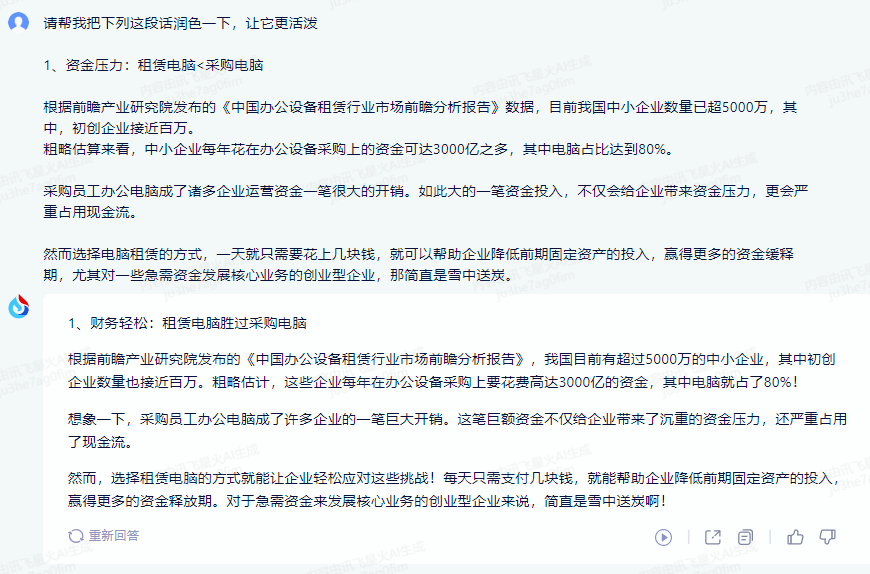 △讯飞星火输出