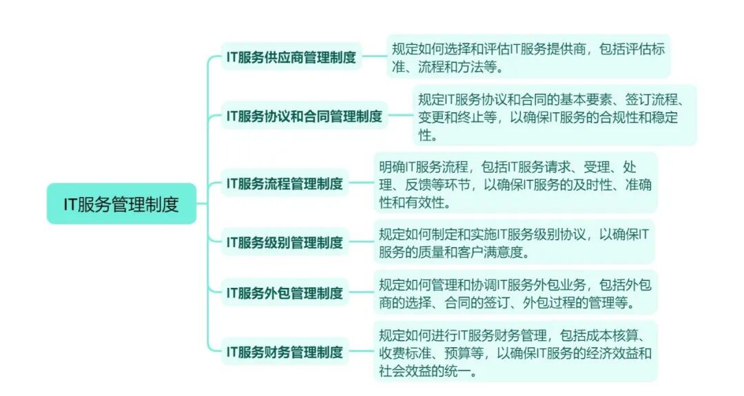 通常来说IT服务管理制度涵盖了以下几个细分制度: